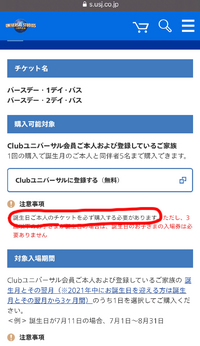 Usjのバースデー 1デイ パスをwebチケットストアで購入しようと思うので Yahoo 知恵袋